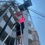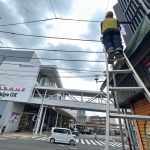 商店街灯に掲揚しました、12旗の『星条旗』と『日の丸』の国旗を