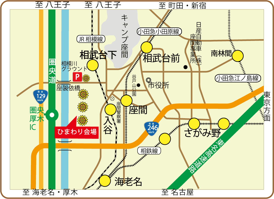 ●「ひまわりまつり会場」⇒ 小田急線「相武台前駅」