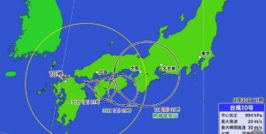 「台風10号 サンサン」は、午前11時時点で大分県の国東市付近にあります。