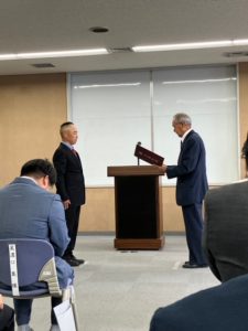 座間市選挙管理委員会、委員長の関伴治氏から付与され、