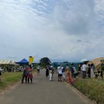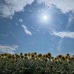 午前中は雲が多く午後は太陽の日差しがまぶしい空の下