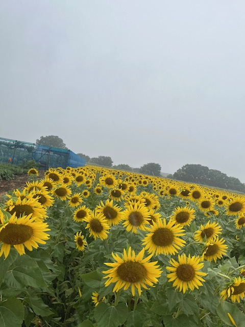 朝から雨のひまわり祭り会場(四ツ谷地区)