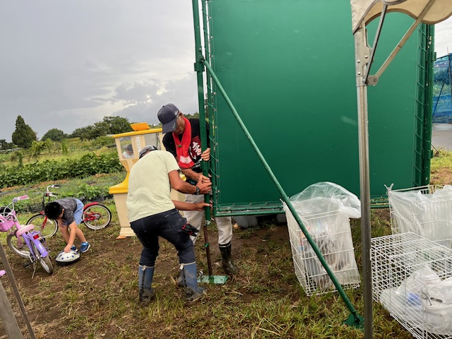 夕方に突如強風!(トイレ柵が飛ばされる)