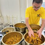 約3000本のひまわりの花びらを活用して、ひまわり染めを行いました。