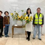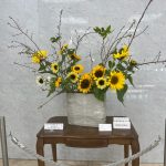 座間華道協会のメンバーの方々が『ひまわり生花』を作成しました。
