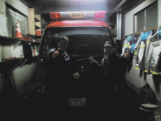 最後の歳末火災運動の消防車にてパトロールに向かう