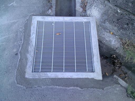 市道の側溝の危険なグレーチング蓋が歩行者に危険を及ぼすため