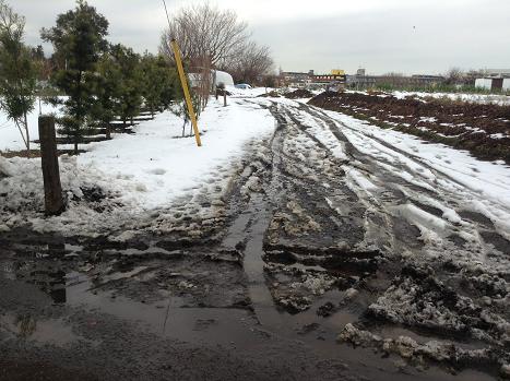 雨季は泥沼となり輪達が市道(栗3号)へと