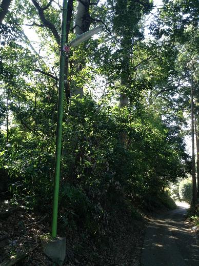 昼間でも暗い山中の防犯灯
