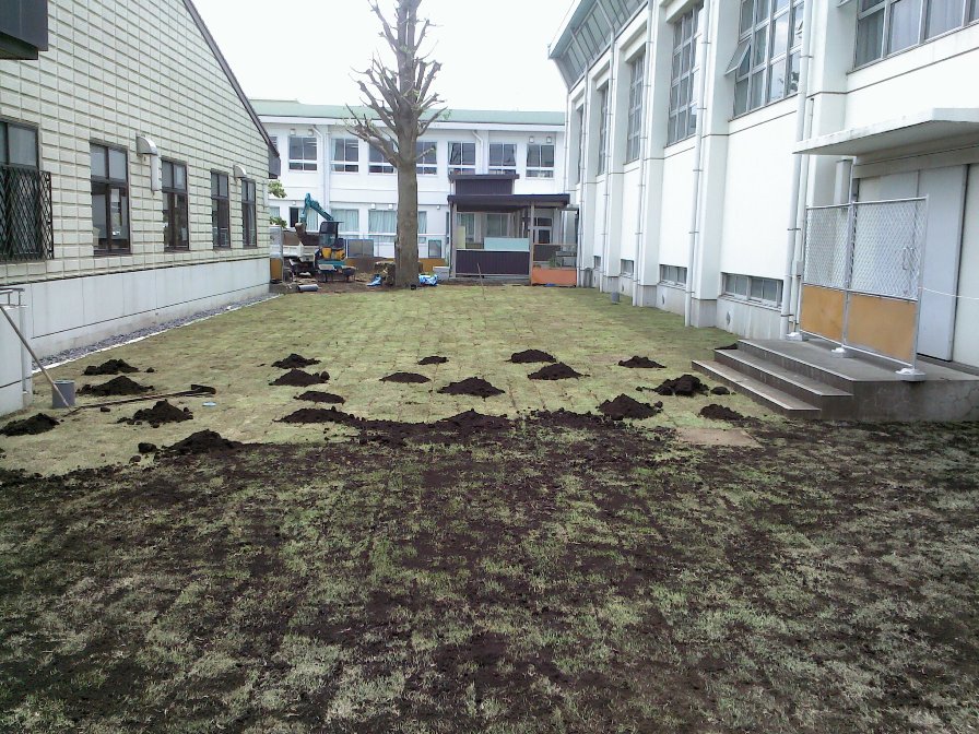 平成25年度当初予算に組み入れられた、学校の中庭の芝生化の実験とも言うべき