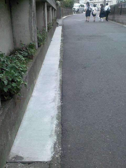 7月5日 座間市栗原地区 小学校の集合場所にて、国道246号線の抜け道になっていました 市道(栗中105号)の側溝の改修が、座間市道路課により行われました。 この市道は、学校の子供たちが登下校中に国道へ急ぐ車を避けるため、側溝があり危険な状態が続いておりました。地元の自治会の方々からの要望にて、通学路に側溝が設置されました。よかった!よかった!と子供たちの声が聞こえます! (写真:国道へと続く裏道通学路 栗中105)