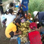 夏休みも終盤を迎えている地元小学生がヒマワリ畑(座間市小池地区)にあつまり恒例のひまわり収穫祭が行われた。毎年地元小学校の生徒が親切な農家の方々から2反畑をお借りして、5月に種植え6月雑草取り、7月に開花したひまわりを8月に入りヒマワリを有効活用しようと全国でも珍しい商品開発を行ってきている。この取り組みも今年で8年目。今年も子供たちのアイデアを取り入れた「ひまわりプロジェクト」が始まった!!