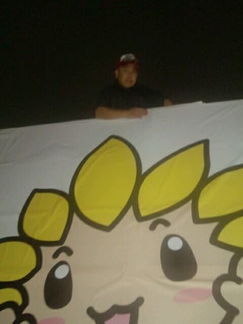 10月5日(土) 今週日曜日開催される、「座間市ひまわりフェスタ」の舞台作成が雨と人数不足により午後1時から夜9時まで雨の中ノンストップで行われた。ボランティアの皆さんの力で素晴らしい舞台が出来上がり、明日のひまわりフェスタを迎える事ができる。明日のボランティア集合は朝7時だ!みんな気合が入っている!! (写真 雨の中での大型看板設置作業)写真By笹岡さん