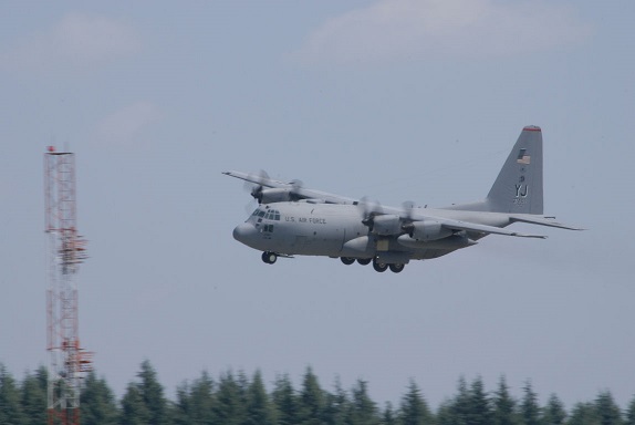 厚木基地の戦闘機の離発着のような訓練は行われず、C-130輸送機、C-12小型輸送機