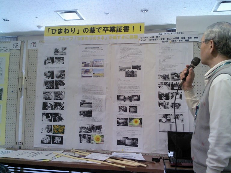 60歳以上の男女が東地区文化センターに集い学習をし、1年間テーマを決めて、調べ学習を行ってきた