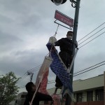 (写真 鯉のぼり取り付け風景 さがみ野駅北口)