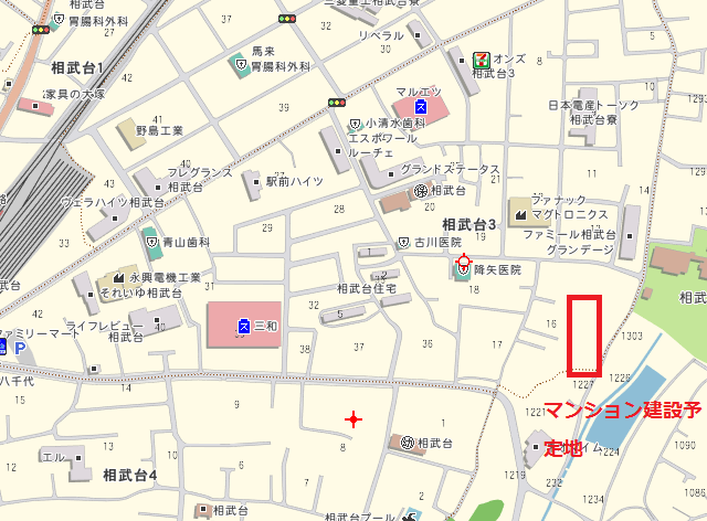 相武台3丁目、南側 相武台東小学校南西に8階建てのマンション建設が予定をされております。現在建設計画に関わる株式会社ヒロ・デザイン・オフィスによると個別説明のため建設地付近の方々に挨拶と説明のため訪問をしているとのことです。住民説明については、今後予定をしておりますとのことです。