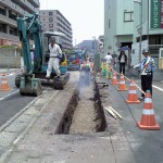 数日後、駅降り口付近へと工事が進んでまいります。路上駐車は工事の妨げとなります。