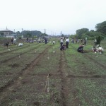 現地の人々に聞くと、最近大きなキジがヒマワリの芽を食い荒らしているとのこと。2004年から子供たちと共に行っているヒマワリづくり、10年目で初めての失敗である。とりあえず小学5年生の間、そして校長先生が参加する中、雑草取りは行われ、その後、大人達(商店会、あすなろ大学)で種を撒いた。終了したときは日が暮れかけていた。