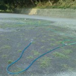 快晴の週明け、相武台前駅から徒歩5分に位置する都市公園『かにが沢公園』の多目的広場を芝生環境に整えようと立ち上がった芝生育成市民団体『いさま芝生会』が本日月曜日、『窒素』『リン酸』『カリ』が豊富な配合肥料30kgを蒔き、スプリンクラーで散水をしました。この事業は、座間市公園緑政課の指導の下アダプト制度『市民参加の芝生整備』にて、芝生育成を行なっています。