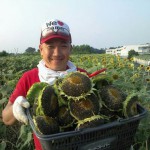 ヒマワリの収穫は本日最終日。収穫されたヒマワリは、種を脱粒し、蒸留所へ送られます。今年も豊作で美味しいお酒ができます。