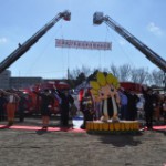 東原小学校で新年恒例の消防出初式を行いました。 出初式は、消防職、消防団員の士気高揚と職務遂行への決意を新たにするとともに、市の消防力、防災力を広く市民の皆さんに公開し、消防に対する信頼と認識を深めてもらおうと、市消防本部が毎年開催しているものです。