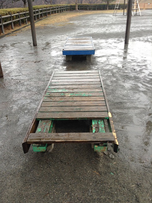 本日、緑ヶ丘に在住の方から、かにが沢公園のベンチが破損していて危ないとの連絡をお受けしました。