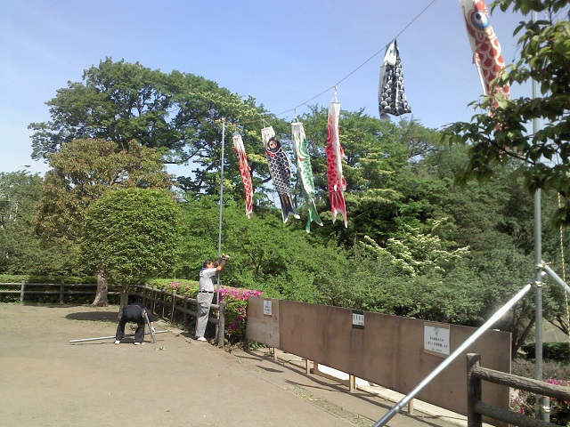 例年だと30匹のこいのぼりが泳ぐ公園であるが、今年はたった6匹の掲揚。