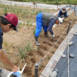 マリーゴールドの植え付け作業 (相模川河川敷)
