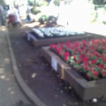 熱い昼下がり、座間市の相鉄線さがみ野駅北口の並木道にて、地元の東原保育園の子ども達が、手づくり花壇に挑戦、子ども達と一緒に汗をかきました。