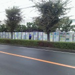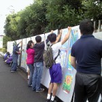 10月18日 座間市ひまわりフェスタ開催に先駆け、会場となる日産自動車株式会社座間営業所の正門には、市内の小中学校の生徒が今年夏に描いたヒマワリの絵画3000枚が飾られ、大絵画展が行われています。