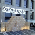 (写真 到着したヒマワリ焼酎 座間市役所前)