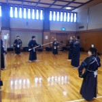 (写真 稽古風景 防衛大学より強い 横浜本間道場の剣士と こどもを教える安西先生。)