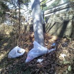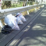 かにが沢公園に接する、市道「相武88号」 相武飯店前の窪地の山林に投げ捨てられるゴミの山を見て、通学途中の小学生がゴミを拾おうと崖下に降りようとしていました。じゅんろうおじさんが片付けるから危ないからと忠告し、1ヶ月が過ぎ、やっとゴミ拾いを結構できました。この山林は民間地のため地主の方の許可を経てゴミを収拾しております。