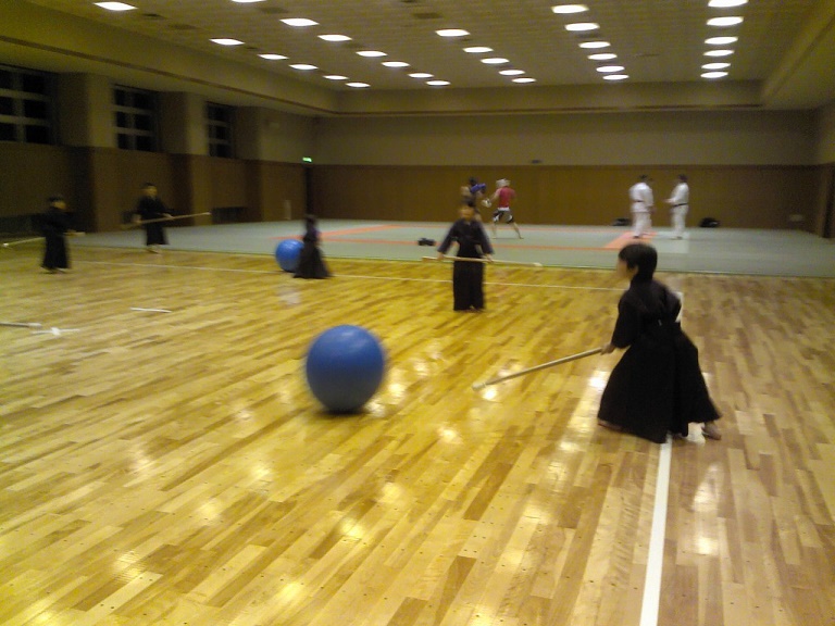 (写真 ボールを利用した稽古 スカイアリーナ座間武道場)