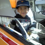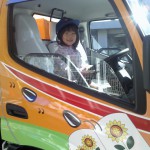 (写真 ごみ収集車展示場と笑顔の子ども達) ※写真は、保護者の許可をもらい記載をしておりますご了承ください。