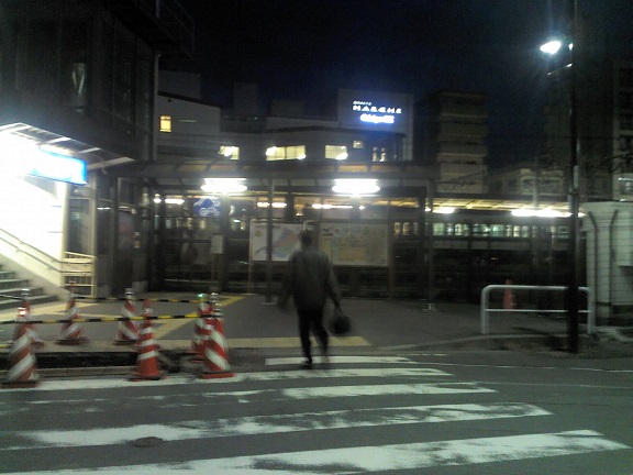 (写真 早朝5時30分の相武台前駅南口 この事故で約1万人に影響がでました。)