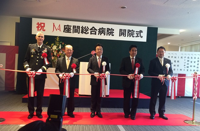 座間市に新しく座間総合病院が開院するに当たり、関係者を集い開院式が行われました。開院式には、座間市長をはじめ、市役所関係者、座間市医師会会長、他、医療関係者、近隣のキャンプ座間米軍司令官および陸上自衛隊駐屯地司令などが参列し盛大に行われました。