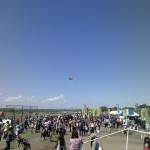 (写真 祭り会場と空に向かって浮かび上がる座間の大凧!)