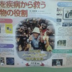 (写真 土曜日参加にて小学校で面白い記事 ノーベル賞受賞者大村智さんの記事と二市障害者合同運動会の様子)
