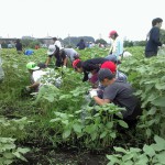 今日は、地元の相武台東小学校5年生、あすなろ大学の先輩、相武台南口商店会と合同でヒマワリ畑の雑草とりを行いました。