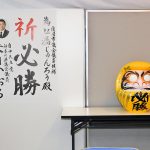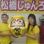 選挙前日 座間市ひまわりをモチーフにした必勝だるま と 芥川県議会議員の応援ポスター