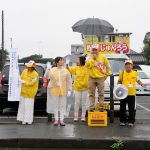 選挙告示日 いざ 出発 出陣式 雨の中の街頭演説(スーパーサンワ前)