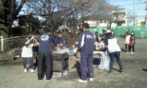 本日は、早朝から地元の中学校で行われる、青少健ふれあい祭りのスタッフとして、ドラム缶を使い豚汁づくりをしました。青少健まつりは、地元の座間中学校を中心に、学区内の相武台東小学校、立野台小学校の学校関係者、先生、PTA、民生児童員、消防団、自治会のみなさまがゲームや、アトラクションを企画し、地元の学生、子ども達とふれあいの場を設けることにより、健全な育成を願い、毎年おこなわれている事業です。