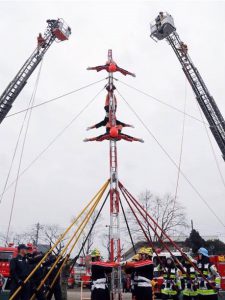(写真 3年ぶり復活 消防はしご乗り)