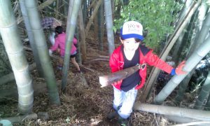 5月3日(水) 憲法記念日祝日 現在座間では、タケノコの収穫が真っ最中 中でも座間市で最もタケノコがとれる小池地区のタケノコは美味しい 今日は、子供たちを集めて、タケノコバーベキューを行いました。 少し早い子供の日です。インドとアメリカからも参加しました。 (写真 座間の小池地区でタケノコを掘ることもたちと記念写真) 写真は親の承諾を頂き記載しています。