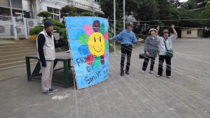 本日、座間市立相武台小学校の生徒と、地元商店会、そしてあすなろ大学ひまわり研究会の