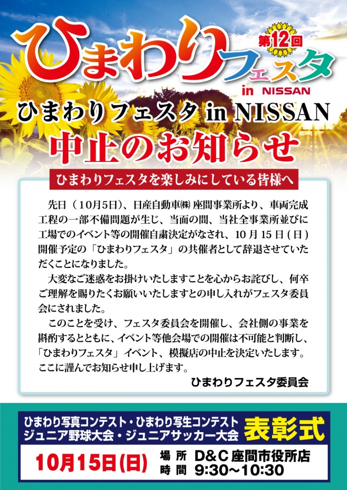 本日は、第12回ひまわりフェスタの中止に伴い、