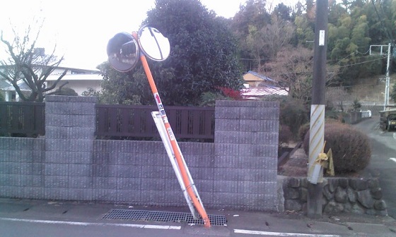 事故で傾いたミラー