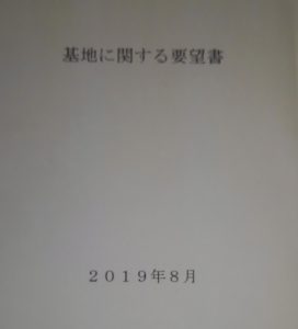 この要望書は、令和元年8月5日「南関東防衛局」へ提出予定となっています。
